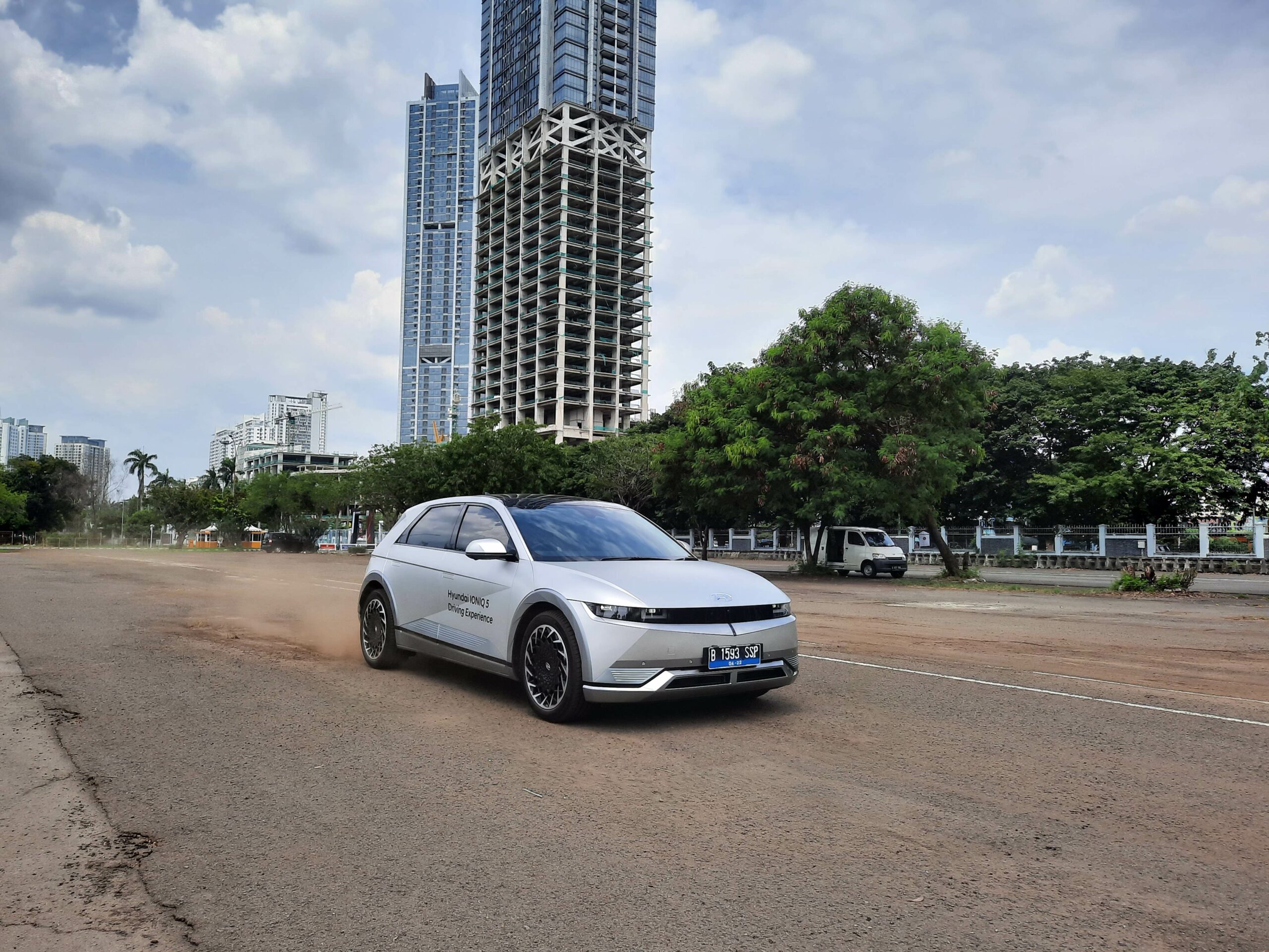 First drive Hyundai Ioniq 5 ini kami lakukan di sekitaran lingkungan JIExpo, Kemayoran, Jakarta Utara, dan melewati sebagian Jl. H. Benyamin Suaeb.