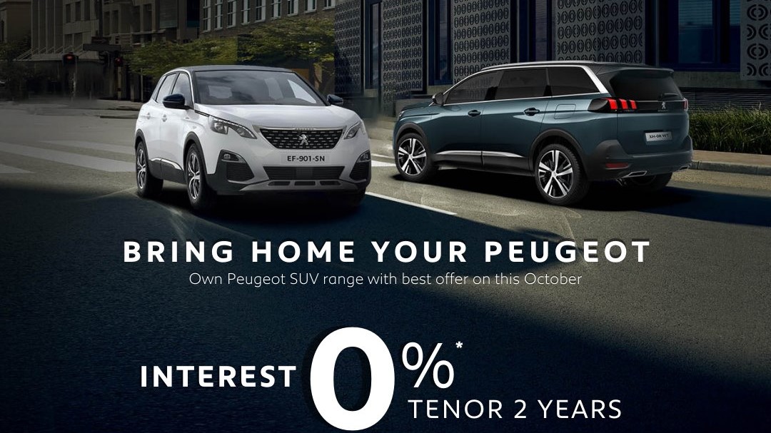 “Kami memberikan paket kredit menarik di bulan Oktober ini untuk bisa memiliki SUV Peugeot imipiannya. Baik cicilan ringan, bunga 0 persen, dan DP rendah bisa jadi pilihan bagi para customer kami agar dapat segera membawa mobil Eropa yang stylish ini ke garasi rumahnya.” tutur Rokky Irvayandi, Chief Executive of Astra Peugeot.