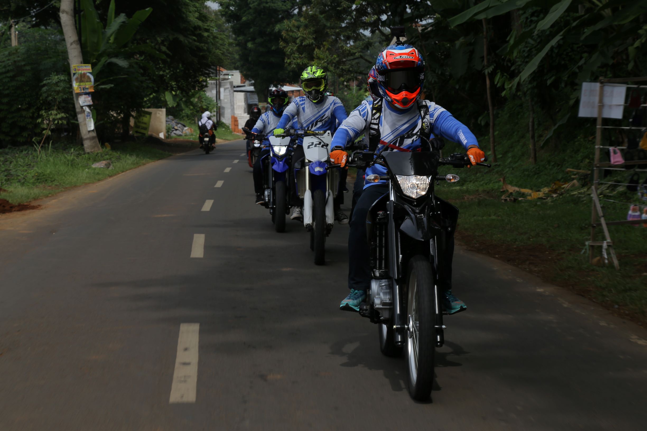 Menjelajahi jalanan on road dan off road, Wawan Tembong dan Akbar Taufan mendampingi konsumen WR 155 R menguji ketangguhan motor tersebut.