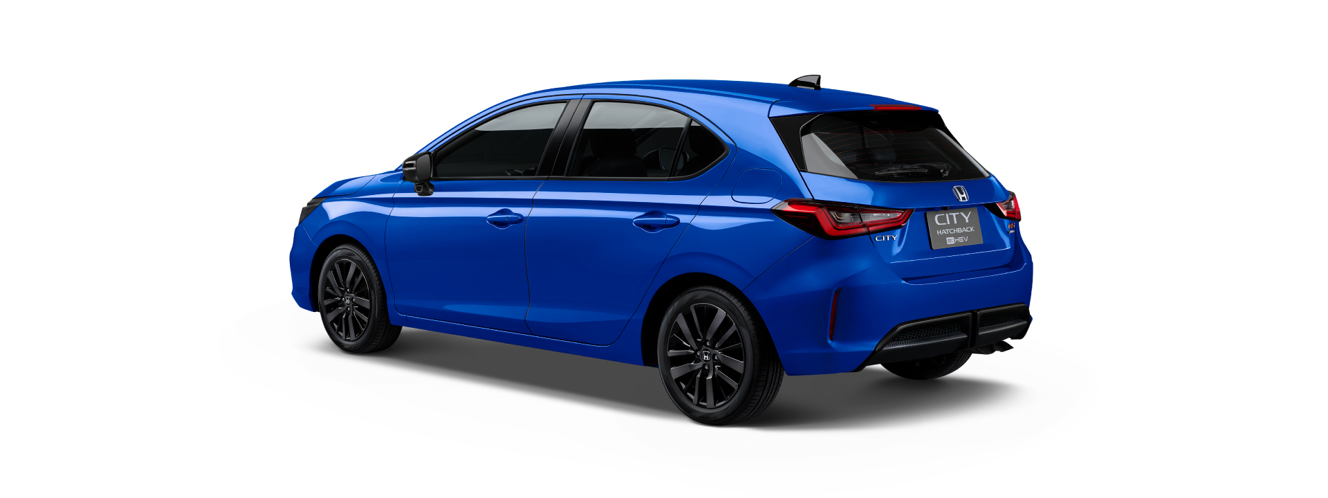 Dari segi tampilan, pada eksterior City Hatchback e:HEV terdapat gril depan berwarna Gloss Black yang dipadukan dengan bumper serta velg alloy 16 inci. Lampu LED juga sudah disematkan pada Headlights, Daytime Running Lights, lampu belakang hingga fog lamp.