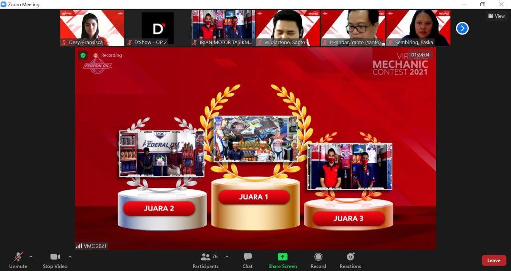 Virtual Mechanic Contest 2021 akhirnya dimenangkan oleh mekanik dan owner Sari Jaya Motor Bali. Mekanik dan owner berhasil memperoleh penilaian maksimal pada troubleshooting, role-play dan tanya jawab terkait pengetahuan produk Federal Oil dan teknologinya.