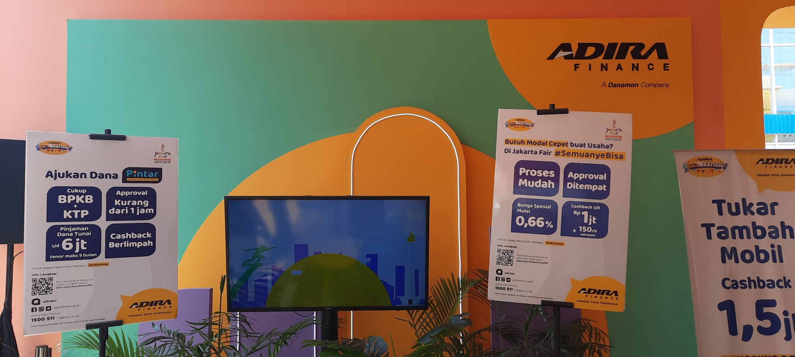 Selain program PINTAR, di Jakarta Fair Kemayoran 2022, Adira Finance juga memiliki program tukar tambah kendaraan, baik motor maupun mobil, dengan berbagai penawaran yang menarik seperti bunga ringan dan cashback hingga jutaan rupiah, berlaku mulai 9 Juni – 17 Juli 2022. Tersedia juga skema dengan pembiayaan syariah. (GO/Gie)