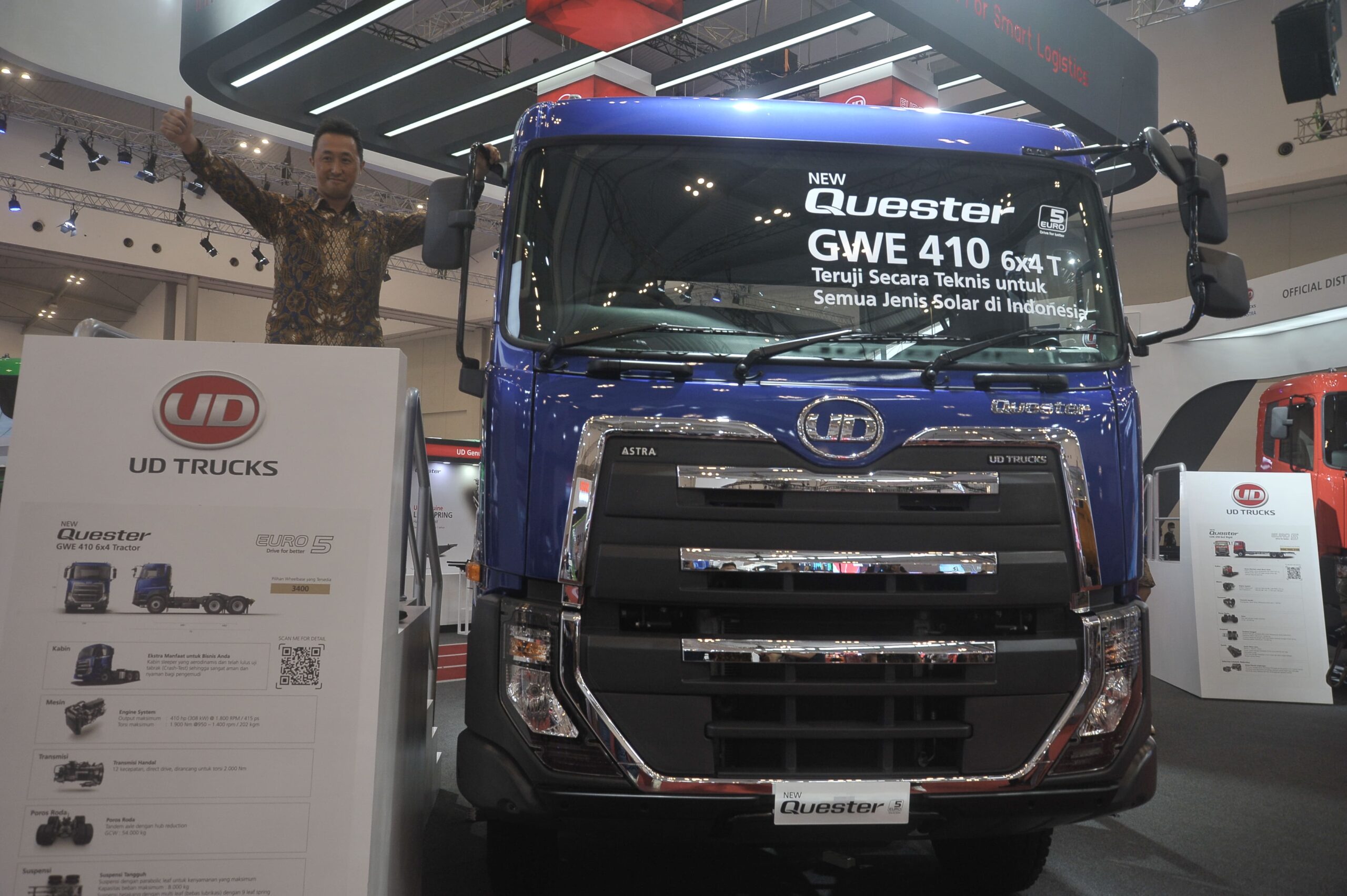Pada kesempatan ini, Toshihiko Odawara, Presiden Direktur UD AMI dan Rahmat Samulo, Wakil Presiden Direktur Pemasaran dan Direktur Layanan Purna Jual UD AMI, secara resmi membuka pameran dengan memperlihatkan kesiapan dari empat rangkaian truk kelas berat, Quester.