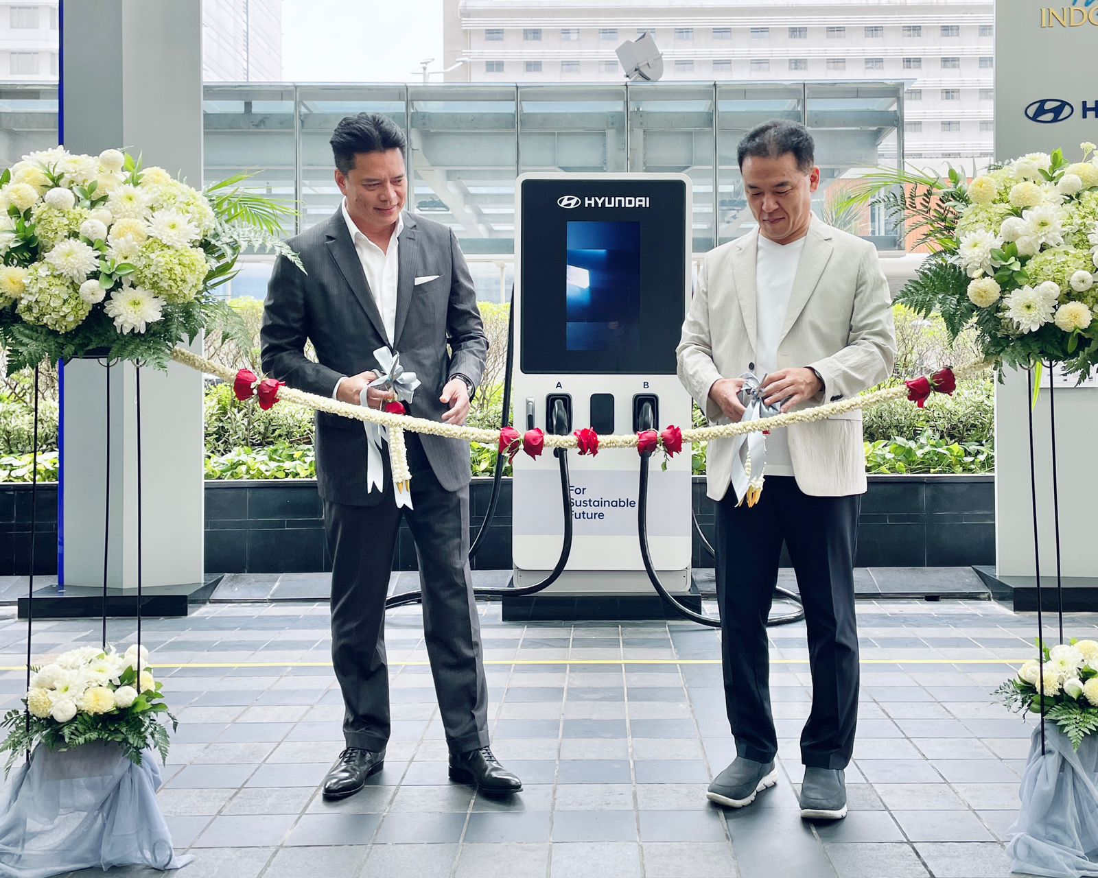 Foto 2 – (Ki – Ka) Boon Pin, CEO Plaza Nusantara Realty bersama Woojune Cha, President Director PT Hyundai Motors Indonesia dalam peresmian Hyundai Ultra Fast Charging di Plaza Indonesia