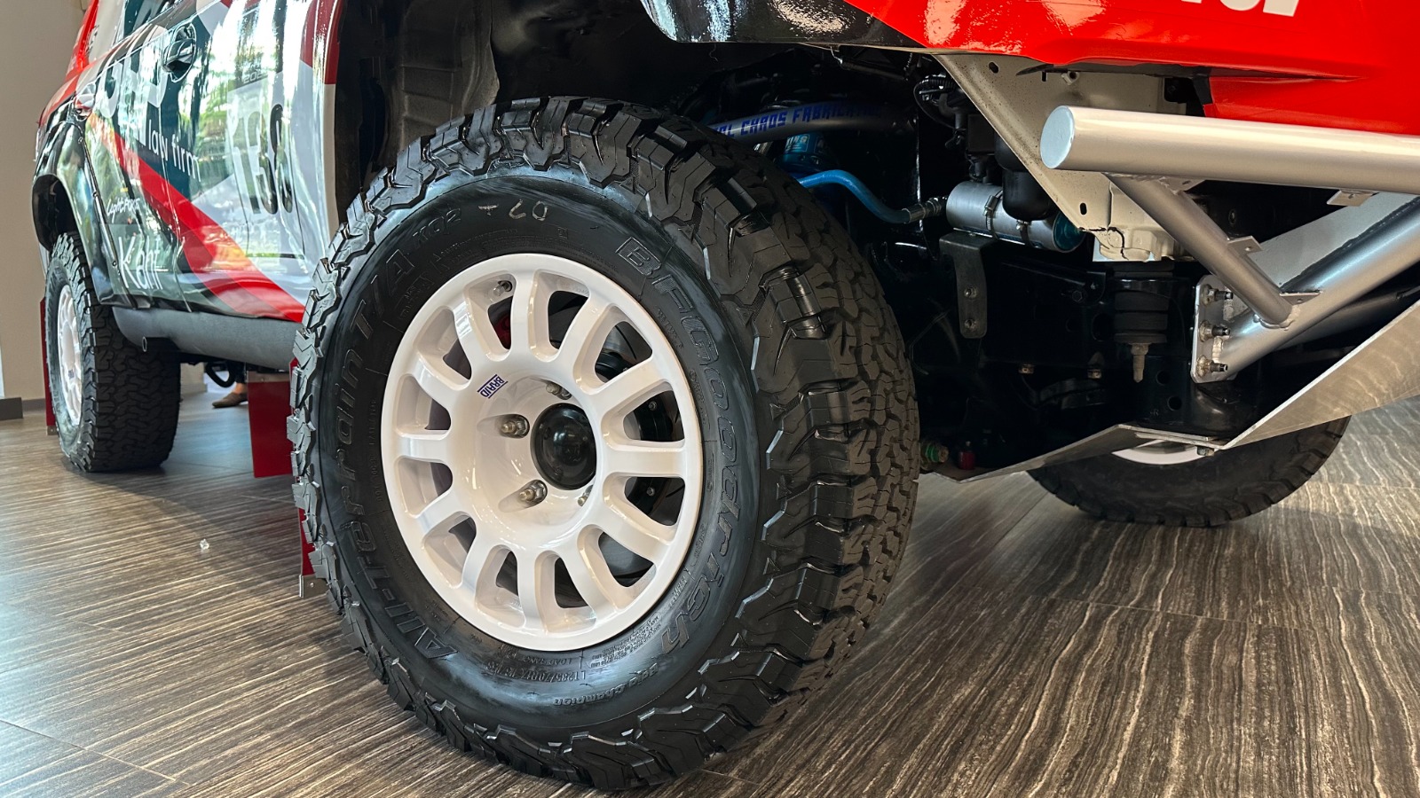Toyota Land Cruiser 2022 yang akan ditunggangi telah dibekali sistem suspensi, Toyota Tundra dengan arm Total Chaos Fabrication yang dikawinkan dengan shockbreaker King Shocks. Perihal penggunaan ban, dipilih ban BFGoodrich K02 & KM3 dengan ukuran 285/70 ring 17 serta velg Braid Wheels Dakar berukuran 17×8.