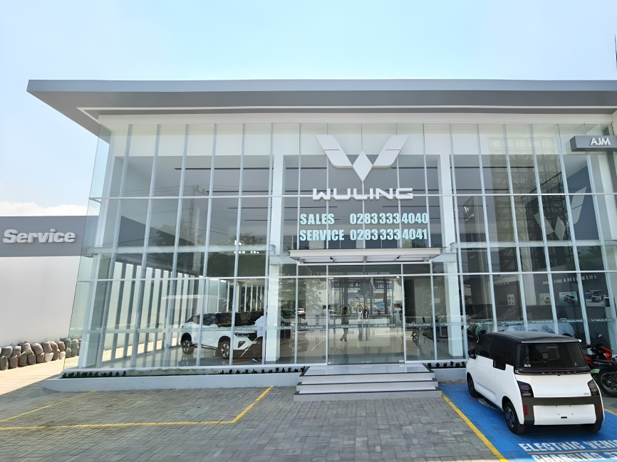 Terdapat area display yang dapat menampilkan lima unit lini produk Wuling, kemudian terdapat empat service bay dan satu area cleaning bay serta dilengkapi dengan charging pile untuk melakukan pengisian daya mobil listrik.