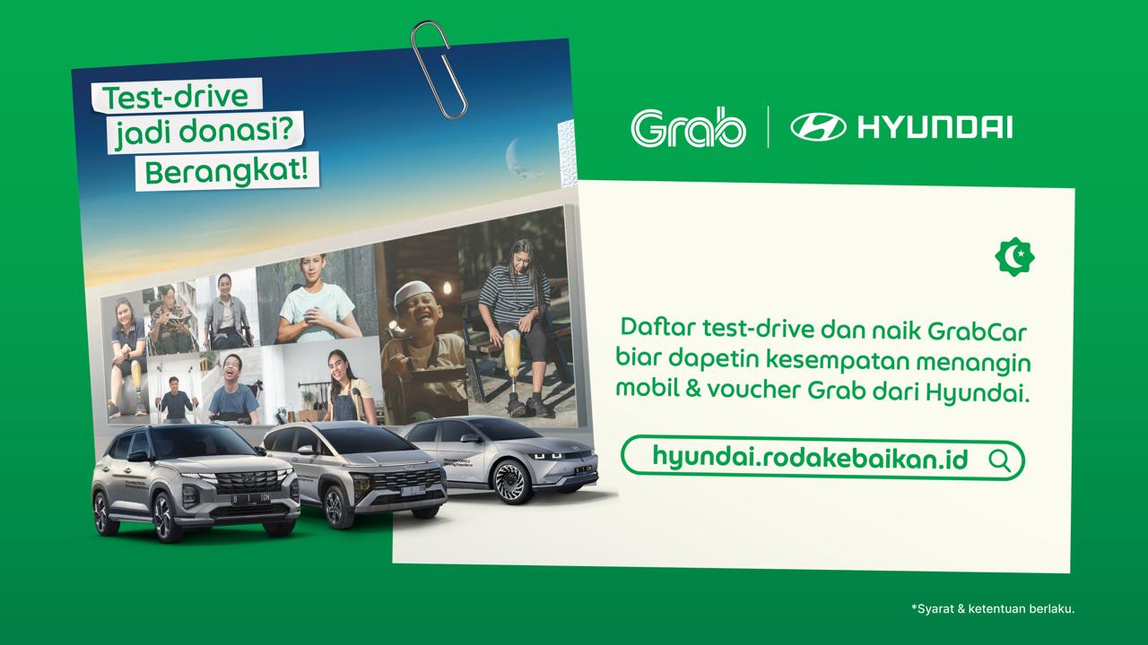 Selama kegiatan test drive #RodaKebaikan berlangsung, Grab Indonesia selaku akan menyediakan voucher GrabCar sebagai solusi mobilitas bagi masyarakat untuk menuju lokasi dealer Hyundai dan pulang ke rumah serta voucher GrabFood yang bisa dipakai pelanggan selepas test drive.
