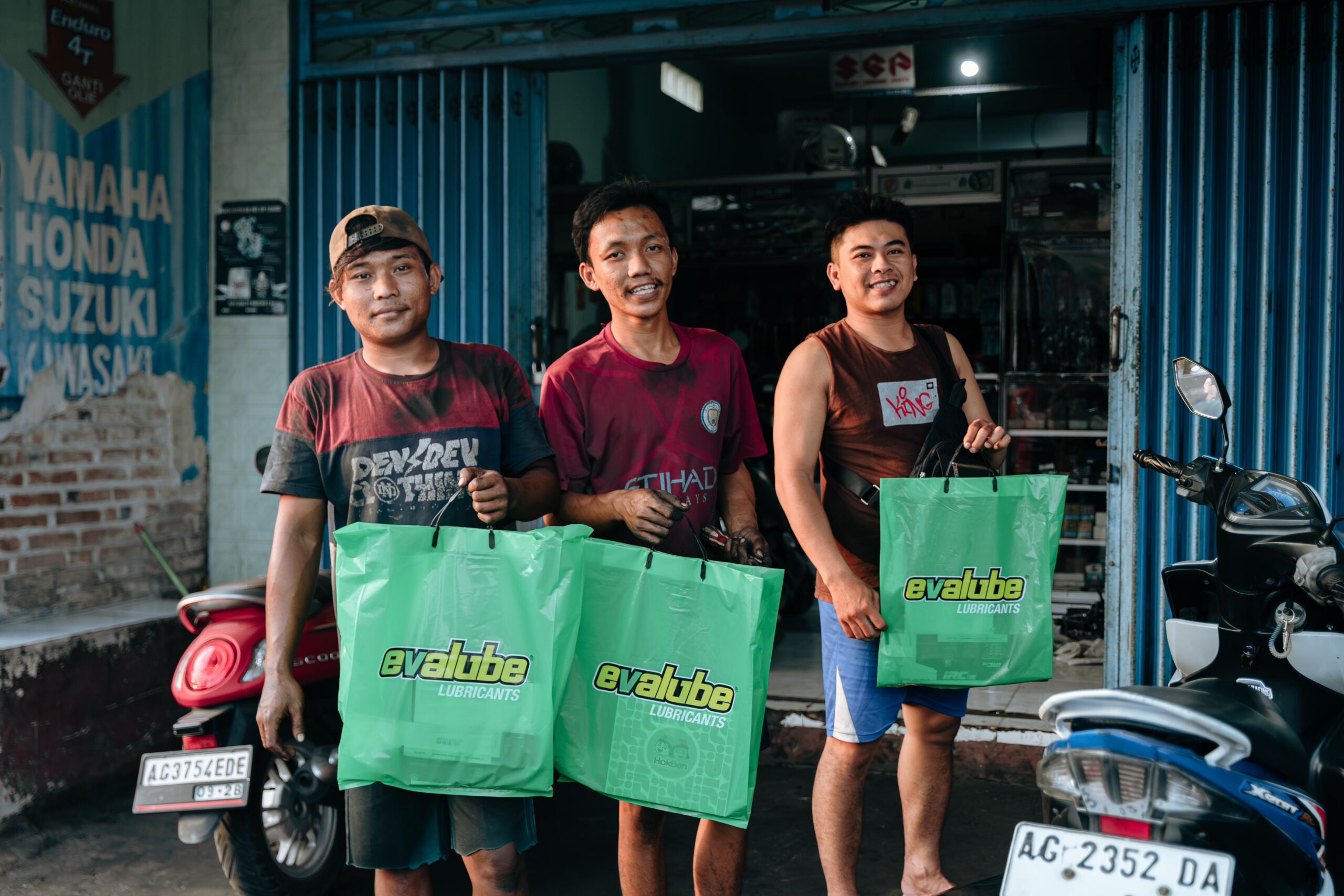 Tidak hanya memberikan santunan untuk pondok pesantren dan yayasan panti asuhan, tim Evalube juga berkeliling memberikan makanan berbuka puasa kepada ratusan mekanik bengkel yang tersebar di enam kota besar tersebut.
