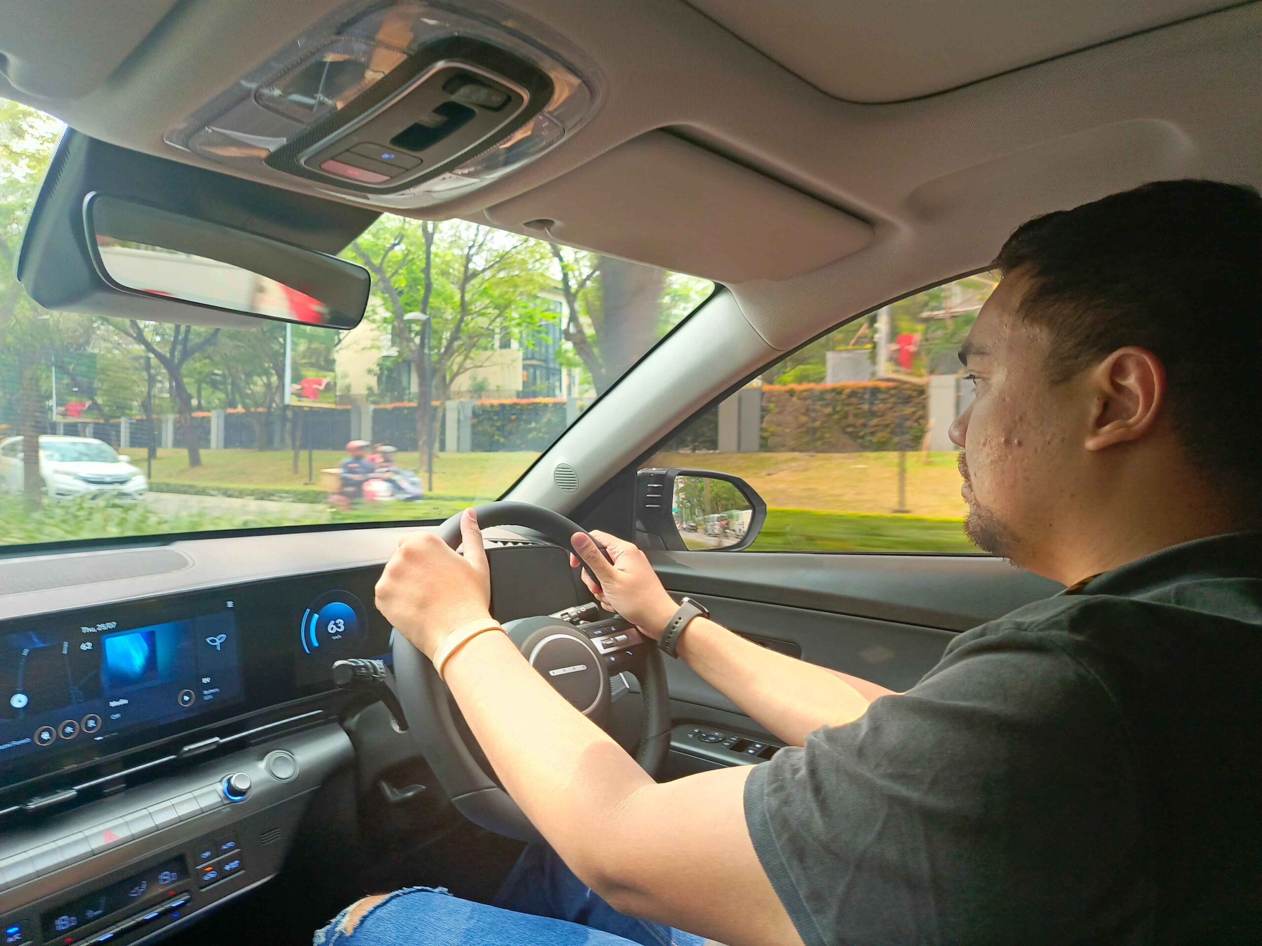 Setelah merasa mendapatkan posisi berkendara yang paling nyaman, kami pun langsung menjalankan All New Kona Electric. Sama seperti mayoritas mobil listrik, Kona Electric juga mampu mengeluarkan tenaga yang instan ketika walau mobil baru berjalan dari diam.