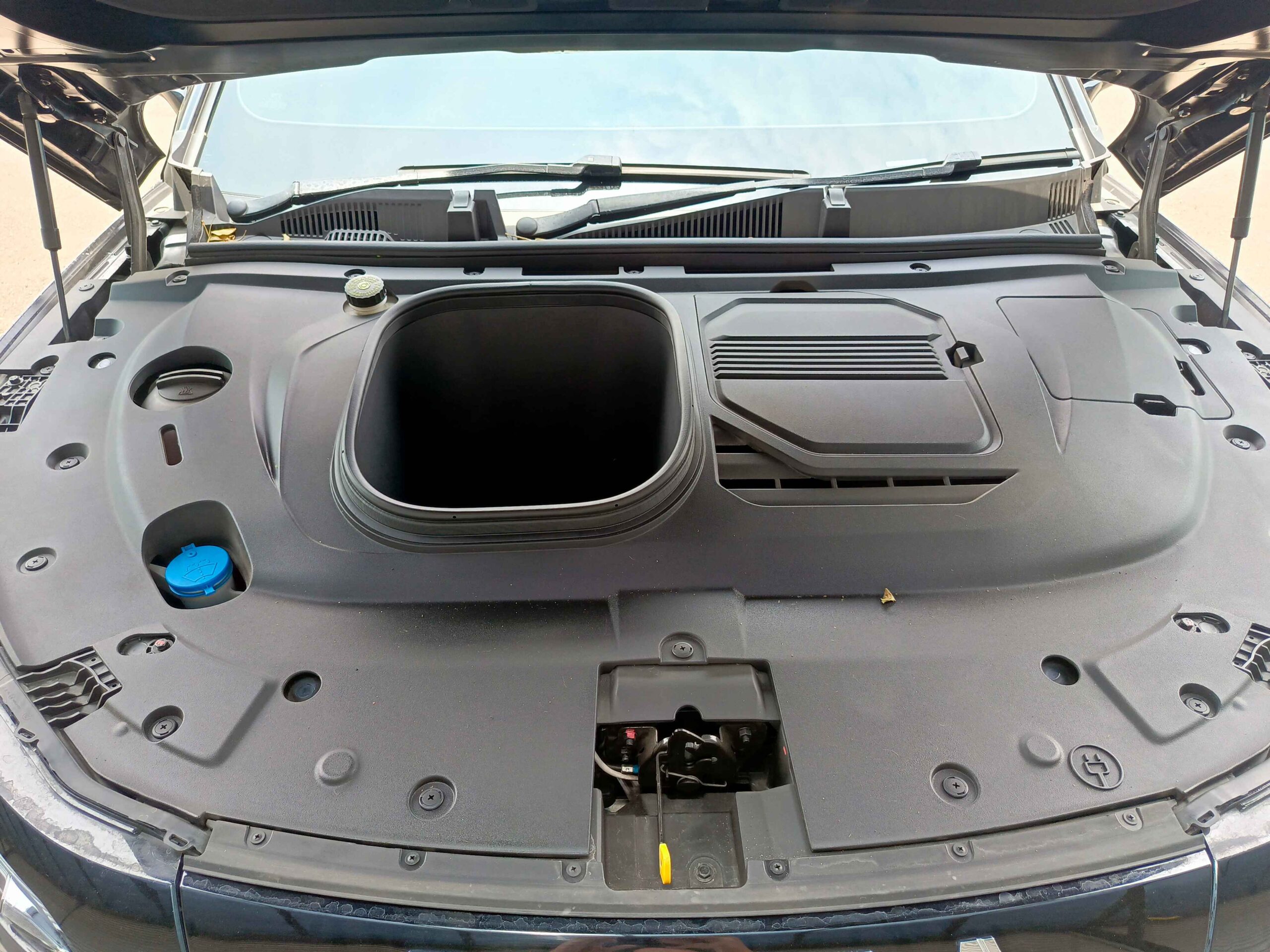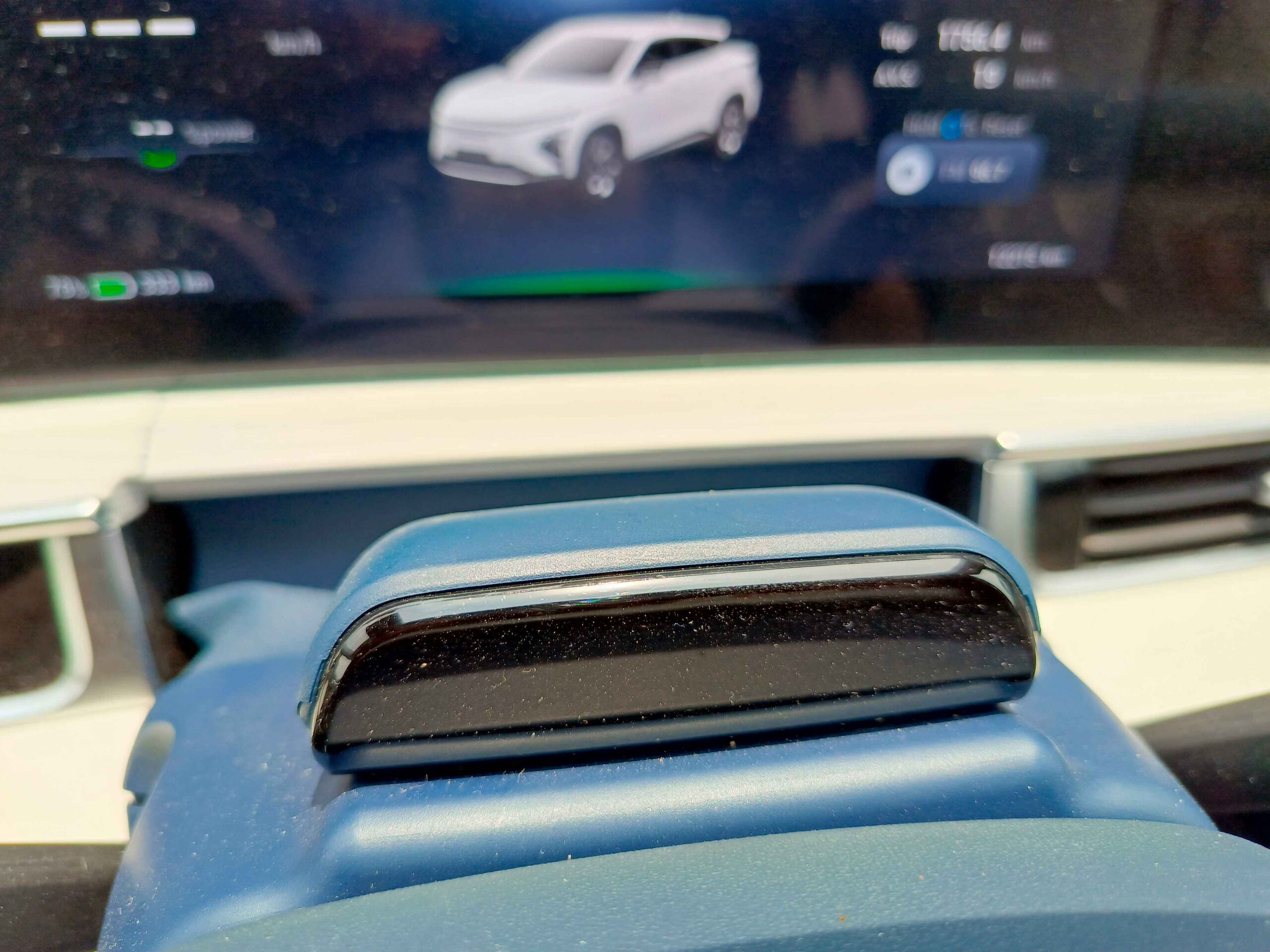 Adanya perbedaan desain dan layout dasbor serta konsol tengah, membuat posisi tuas transmisi Omoda E5 jadi berbeda dengan Omoda 5. Pada Omoda E5, tuas transmisinya terletak di sebelah kanan kolom setir, seperti mobil-mobil Mercedes-Benz.