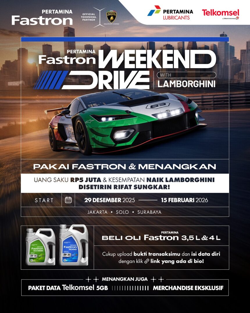 Program ini berlaku bagi pelanggan yang membeli oli Pertamina Fastron di 30 bengkel terpilih Jakarta, Solo, dan Surabaya paling lambat 15 Februari 2026.